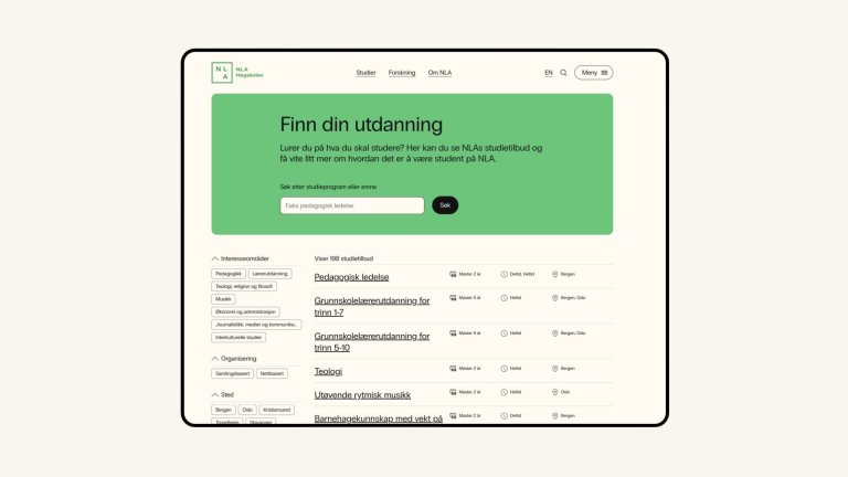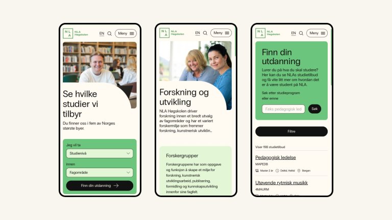 NLA Høgskolen sitt nye nettsted er bygget for å fungere godt for en bred målgruppe, fra potensielle studenter og søkere, til ansatte, forskere og samarbeidspartnere. Løsningen kombinerer tydelig struktur, fleksibel publisering og automatisk oppdatert studieinformasjon, og gir NLA et solid digitalt fundament for videre utvikling.